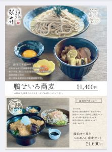 香ばしい鴨肉と、旨味溶け込む温かいつけ汁でお召し上がりください。新提案の薬味「山うに」は相性抜群です!